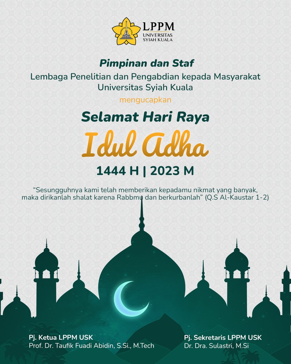 Berbagi bukan tentang seberapa banyak kita memberi, tapi seberapa besar cinta yang kita tuangkan. Selamat Hari Raya Idul Adha 1444 H! #usk #lppm #iduladha