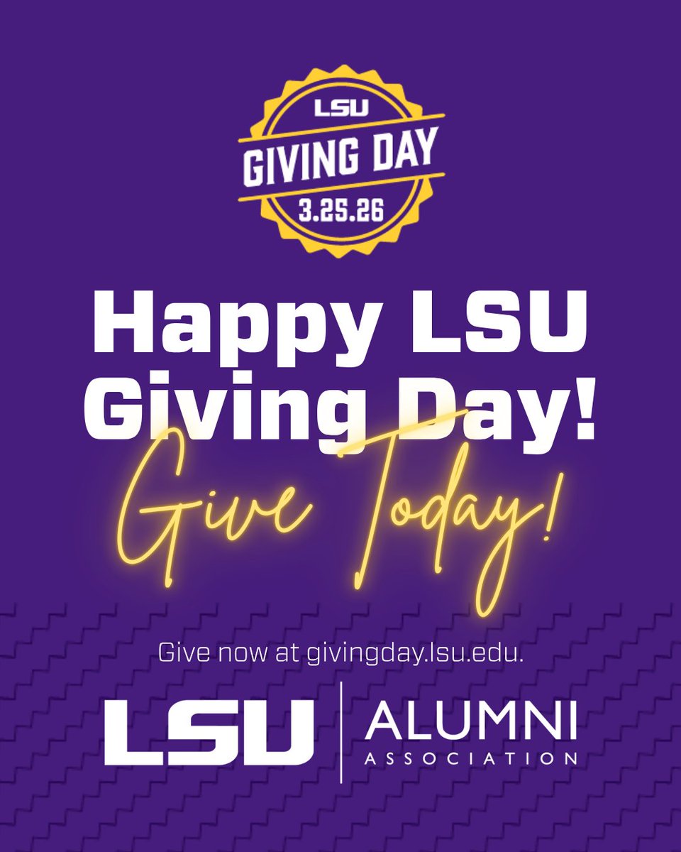 LSU Giving Day is coming to a close in a few hours—but there’s still time to make your impact. Support the LSU Alumni Association and help us continue to strengthen LSU Tiger Nation. Don’t miss your moment → hubs.la/Q0487MZj0 #LSUAlumni #LSUGivingDay #LSUTigerNation