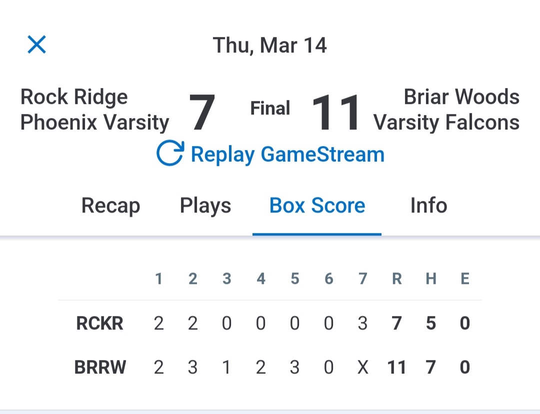 The @rockridge9 trading punches early with @BWBaseball1. Woody with a homerun in this game for the #Phoenix. #LSbaseball