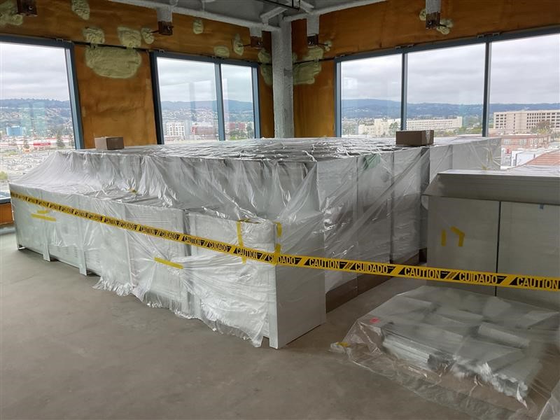 Lab casework staged and ready for installation at The Landing on King Street in San Mateo. Mission Bell delivers full-service solutions beyond fabrication on this project with @DomeBuilds. #architecturalmillwork #labcasework #division12project