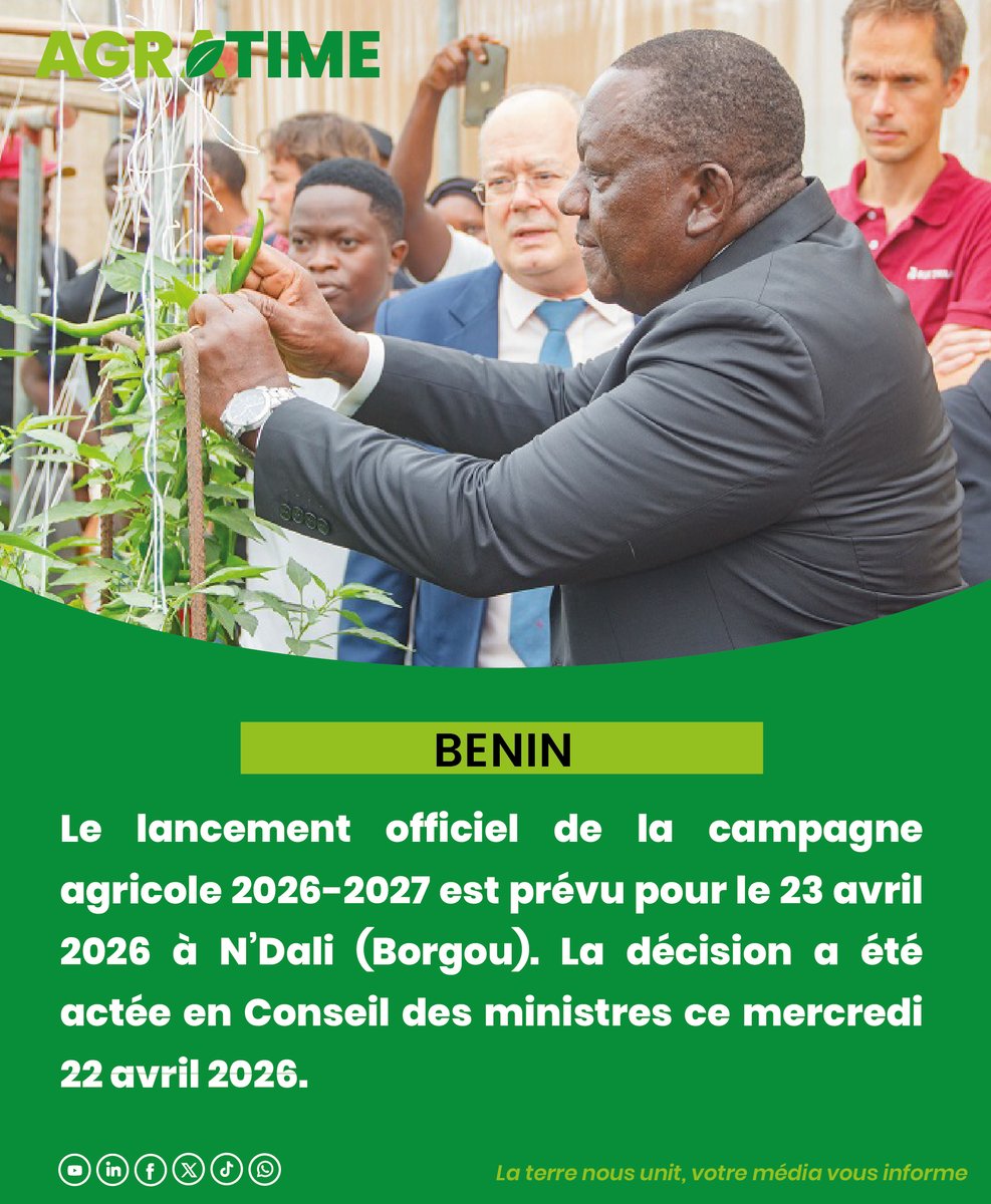 Après le #lancement de 2025 à Dassa-Zoumè, la #campagne #agricole sera officiellement lancée en 2026 à N’Dali ce 23 avril. @IITA_CGIAR @IFDCBenin @DDCBenin @FAOBenin @UEuropenne @EnabelauBenin 📍 Abonnez-vous à notre chaîne WhatsApp via ce lien 👇🏽 whatsapp.com/channel/0029Va…