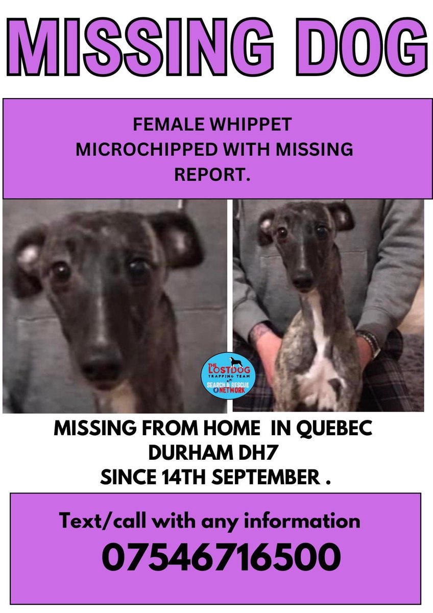 Dissapeared from home on 14/9/24. Could try to get back to old home in #Greencroft #Lanchester #Durham . Poss seen #LangleyPark Area.If sighted pls do not chase/shout or attempt to grab as she will run.Call number on poster with exact location/direction of travel.