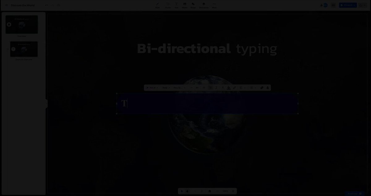 ๐ Support for bidirectional text is finally here! ๐ Easily edit in Prezi with right-to-left languages like Arabic, Hebrew, Persian, Urdu, and more. Select โMore fontsโ in the editor to try it out. #bidirectionaltext #languagesupport #presentationtips