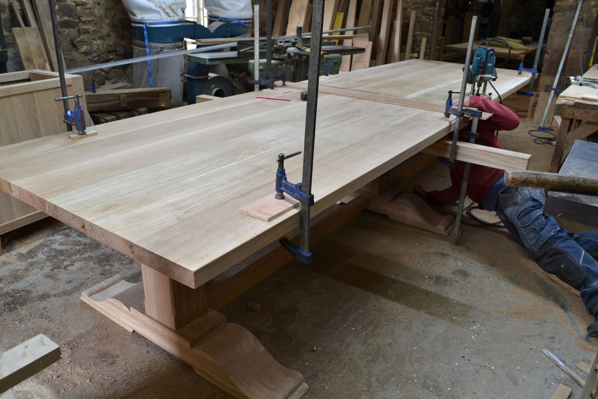 Still working on it! Two extending leaves and a walnut stain to go yet.... ow.ly/TQfD50EX7hr #largeoaktable #tabledesign #pedestaltable #banquet #makers #bespokemaker #furnituremaker #artisanmade #artisanatfrancais #lafrance