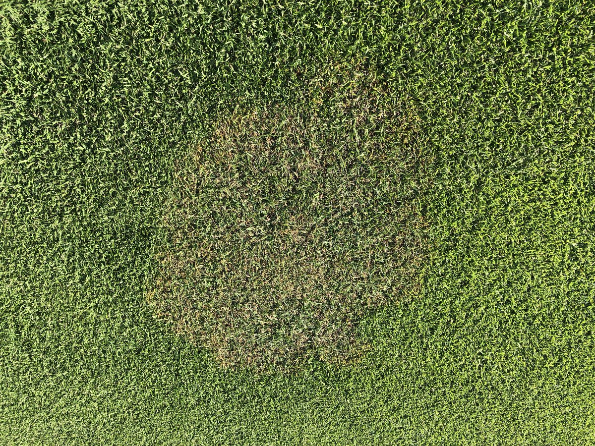 Sorry @GCSAA golf course superintendents, but @HutchensWendell and I ❤️ turf diseases. This pathogen is LOVING the rain! #largepatch #drone #disease