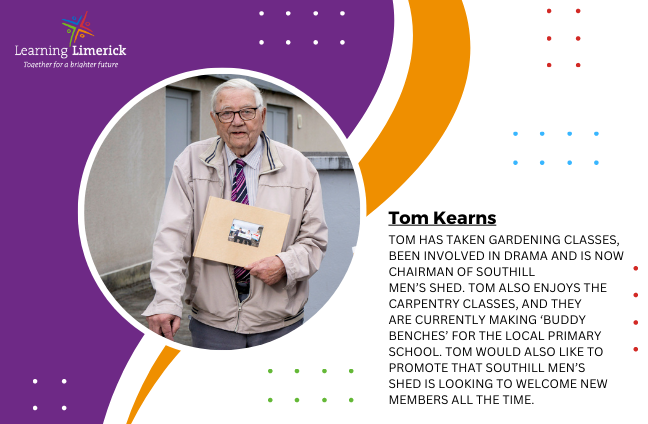 Meet Limerick #LearningAmbassador Tom Kearns from Southill who first got involved in returning to #lifelonglearning when Southill Family Resource Centre went door to door promoting their learning opportunities. #learningcommunities #limerickloveslearning