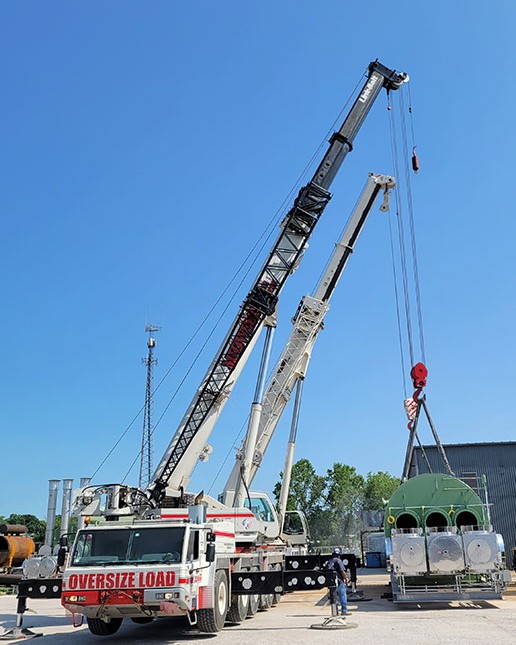 Cranes on site yesterday to move this TERI unit to a safe location for testing. We fully test every unit we ship. #natgas #processheaters #lineheaters
