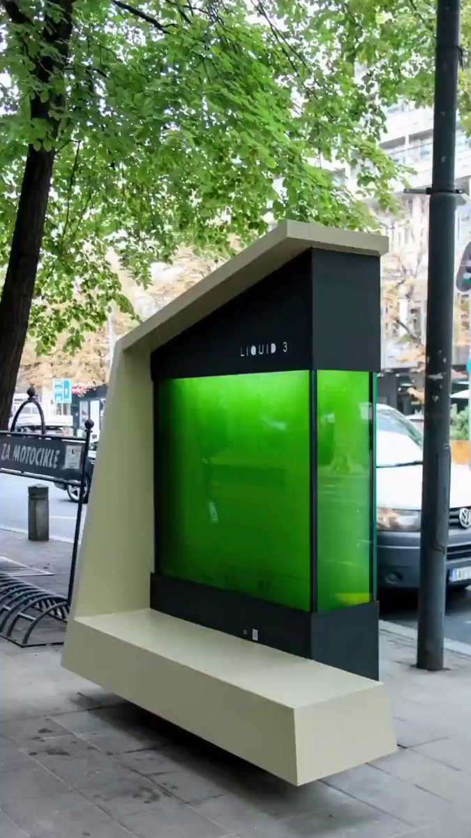 Serbia's first liquid tree installed to combat air pollution. 600 liters of water and microalgae bind carbon dioxide and produce pure oxygen through photosynthesis #serbia #liquidtree #liquid3 #tree #airpollution #trees #photosynthesis #microalgae #Pakistan #everythingpakistan