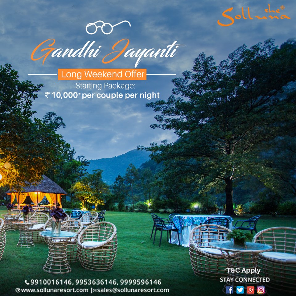So, this long weekend "Say No to sitting idle at home" & take a break from your daily run. To know our offers, visit- sollunaresort.com/packages/gandh… Call Us- 9910016146, 9953636146, 9999596146 Mail- [email protected] #TheSollunaResort #Jimcorbett #LongWeekendOffer #GandhiJayanti