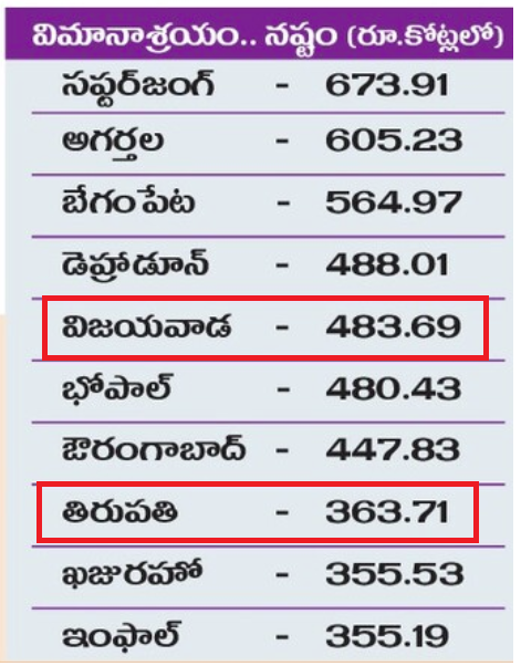 విశాఖ మినహా రాష్ట్రంలో ఇతర విమానాశ్రయాల నష్టాలు ఇలా.. ➡️విజయవాడ 483.69 కోట్లు ➡️తిరుపతి 363.71 కోట్లు ➡️రాజమండ్రి 338.16 కోట్లు ➡️కడప 103.39 కోట్లు #Airports #Loses #AndhraPradesh #UANow #Kadapa #Vijayawada #Rajahmundry #Tirupati