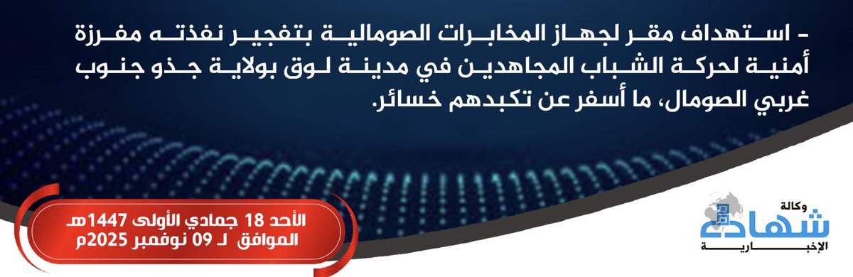 Al-#Shabaab Militants Target the Somali National Intelligence & Security Agency (NISA) Headquarters with an #IED, in #Luuq, Gedo, #Somalia Read more: trackingterrorism.org/chatter/al-sha…