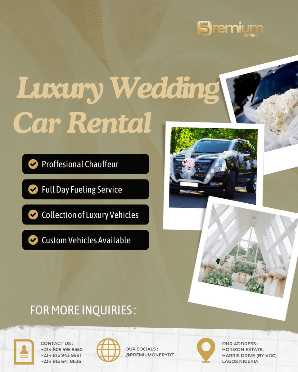 Your special day deserves a special ride. 🚗✨ Book our luxury cars for weddings, parties, and more! #WeddingCarHire #PremiumOneRydz #LuxuryServiceForEvents #LagosBrides Just Engaged Brides of 2025 Justin Bieber Arts & culture #GametimeWithitel