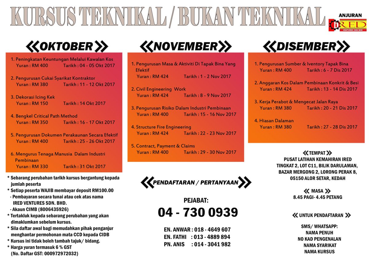 kursus teknikal/bukan teknikal untuk bulan Oktober, Novermber & Disember. #kontraktor #kursus #mataCCD