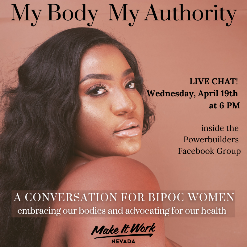 My Body My Authority is coming back! We want to see you on Oct 18th on Zoom for a conversation about obligations and the scariness of going overboard. Register at the link below! ow.ly/ZKxy50PV9kM #miwn #makeitworknevada #mbma #mybodymyauthority #events #october