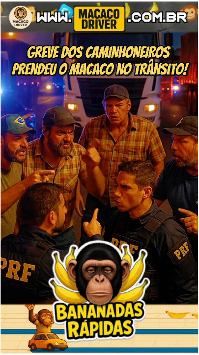 GREVE DOS CAMINHONEIROS prendeu o MACACO no trânsito! 🚛 #macacodriver #bananadasrapidas #greve #uber #humor Achou que ia chegar rápido? Com a greve parando tudo, o Moacaco deu a real pro passageiro apressado. E a gasolina? Virou artigo de luxo! 🙄