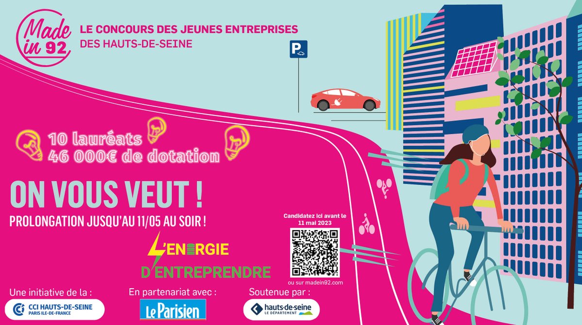 📌📅[ÉVÉNEMENT] ON VOUS VEUT ! #Madein92 | Prolongation des candidatures jusqu'au 11 Mai ! | Prix de l’Innovation Grand Paris Seine Ouest, placé sous le thème " L’Energie d’entreprendre" Inscrivez-vous à Made In 92 ici 👉 cciparisidf.fr/ljh9f4e