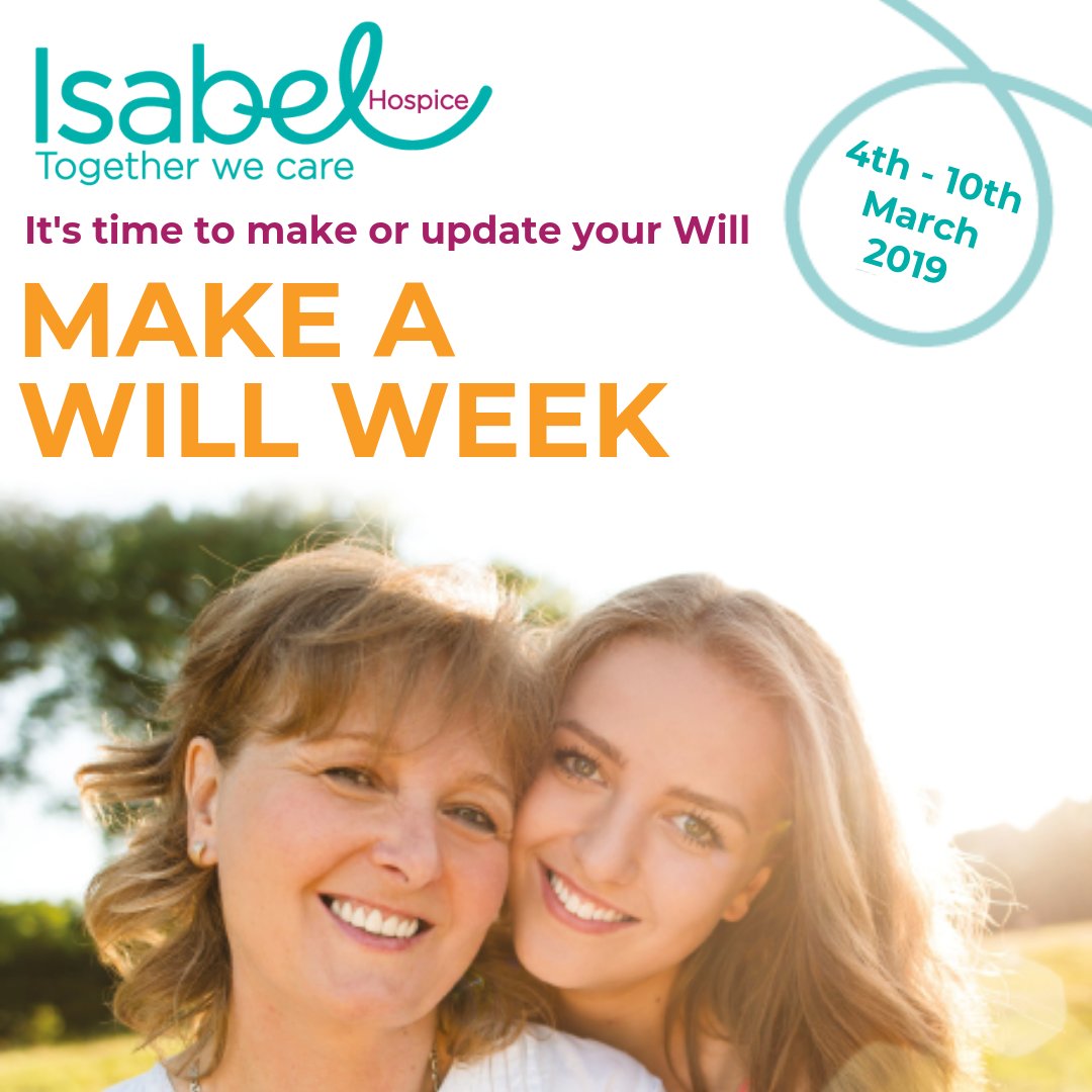 Ensure your loved ones are provided for after you die by making a Will or amending your Will with #MakeaWillWeek 4th – 10th March! For more information on how to get involved visit isabelhospice.org.uk/makeawill