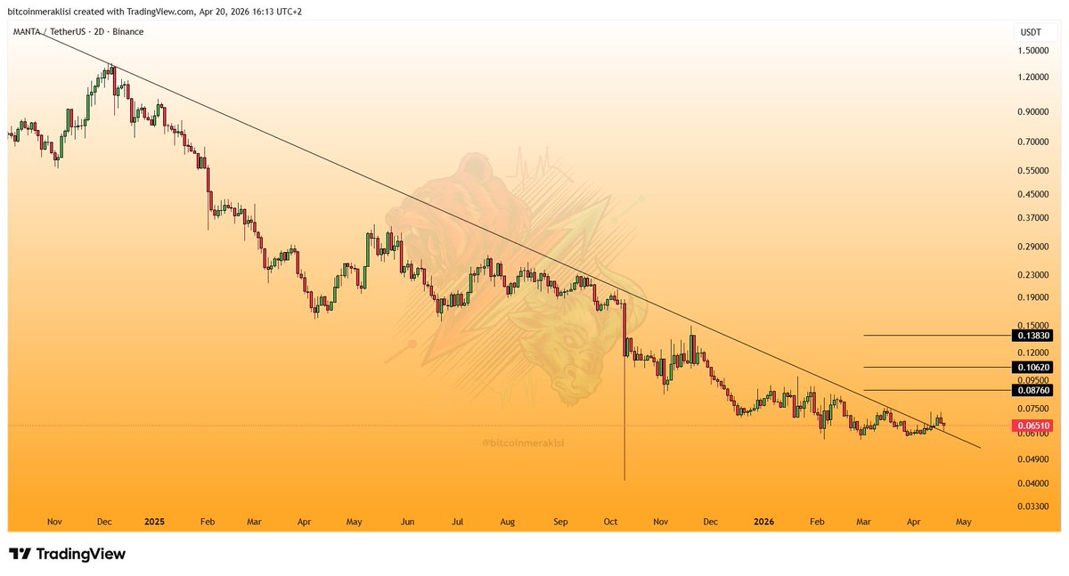 #MANTA Çok kritik bir eşikte. Uzun zamandır deneyip kıramadığı düşüş trendini deniyor. Olası kırılım sert yükseliş getirecektir. Ve yükselişin başlaması durumunda kısa vade de grafikte belirttiğim seviyeler sıralı hedefleri olacaktır. Gözünüz üzerinde olsun.