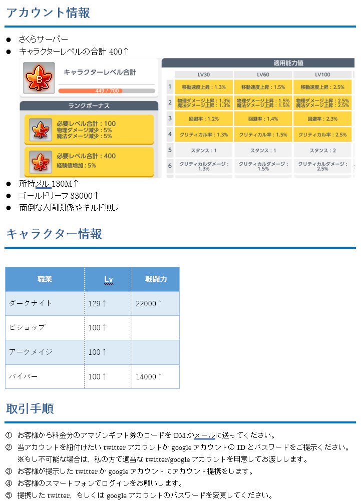 さくらサーバーアカウント Lv129↑ダークナイト Lv100↑ビショップ,アークメイジ,バイパー をAmazonギフト券15kで販売します。3 pbs.twimg.com/media/D5ee50CU… #MapleM #メイプルストーリーM
