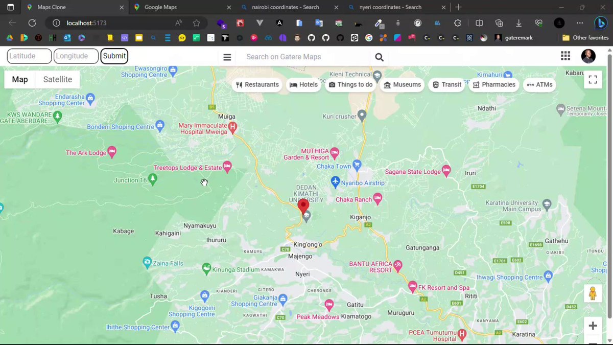#GatereMaps 😂 Added a Place Search and autocomplete feature... 🚀 #ReactJS #TailwindCSS #MapsAPI #GCP #100DaysOfCode #100daysofcodechallenge