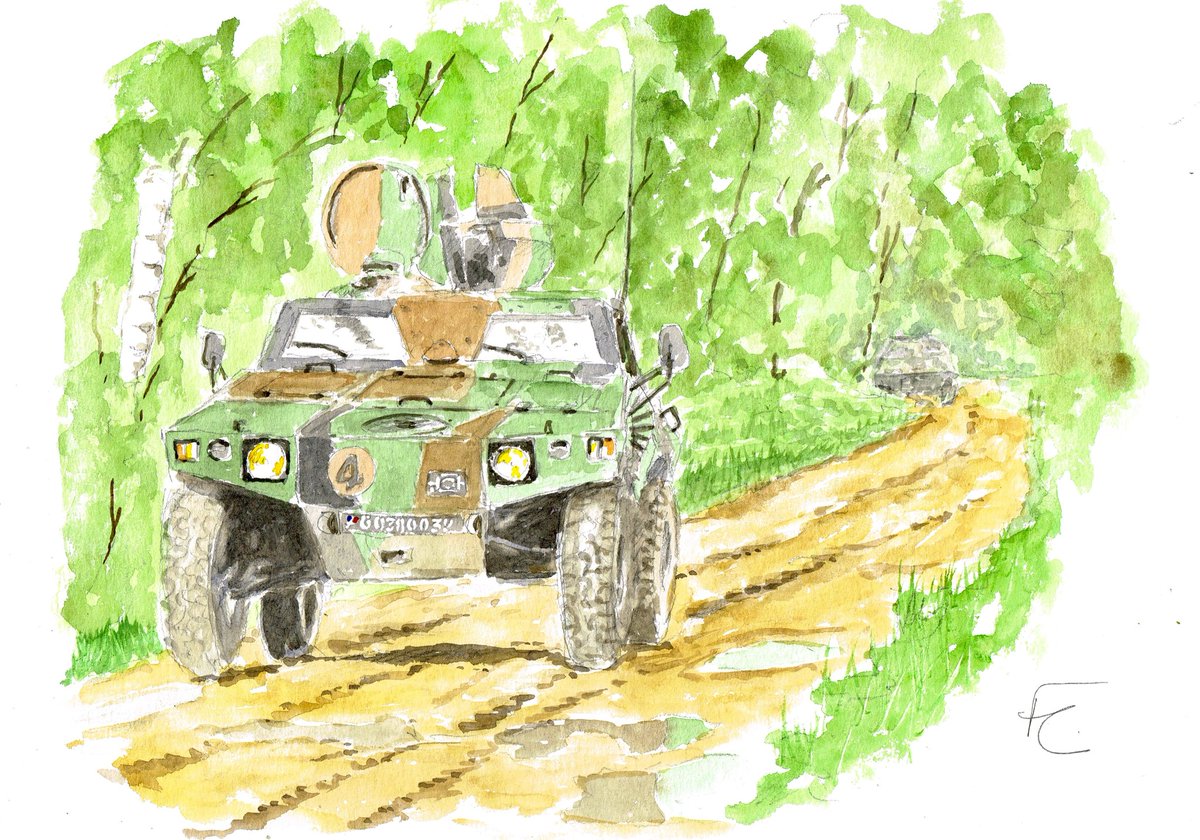 Nous sommes le 12 🫡 Ce mois-ci, François Caplan Croquis Urbains et le @12eCUIRS vous proposent une aquarelle de l'un de nos véhicules blindés légers - VBL ! ➡️ Le saviez-vous ? Le Dauphin Cavalerie totalise près de 150 équipages sur VBL. #PrépaOps #MatosOps #CapaciTERRE