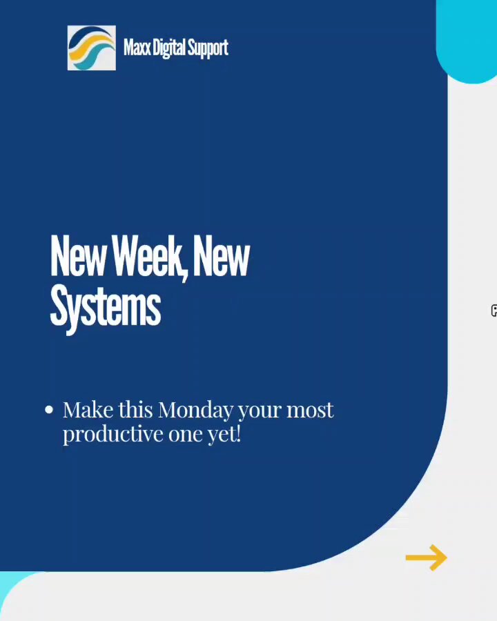 New Week. New Systems. New Level of Focus. Productivity isn’t about doing more, it’s about doing what matters most. This Monday, set your plan, block your focus time, and outsource one task that drains you. Work Smart. Maxx Your Week. #Productivity #MaxxDigitalSupport