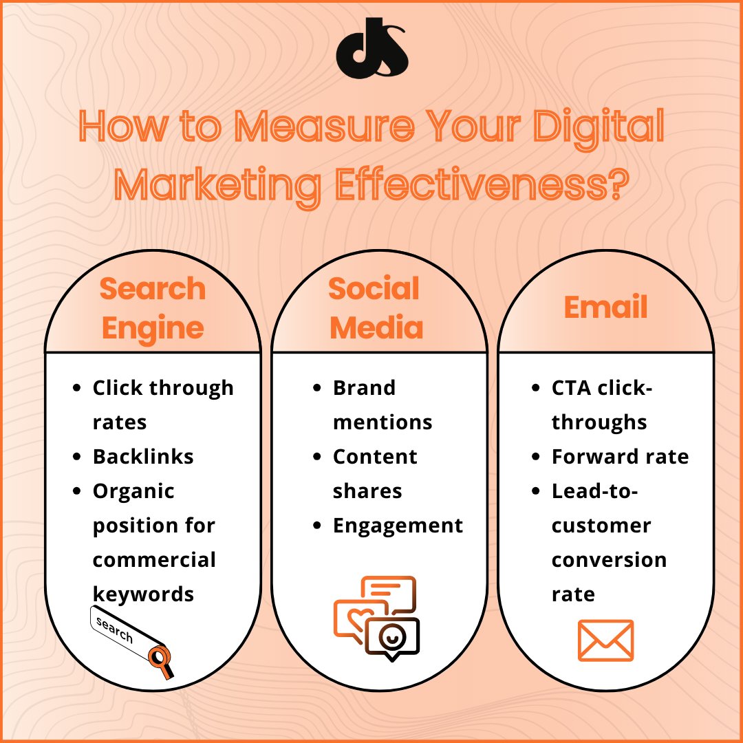 ๐ Are you tracking your digital marketing success the right way? Discover key metrics across Search Engines, Social Media, and Email Marketing to measure your effectiveness and drive results! ๐ #DigitalMarketing #MarketingTips #MeasureSuccess #MarketingMetrics #DSDM