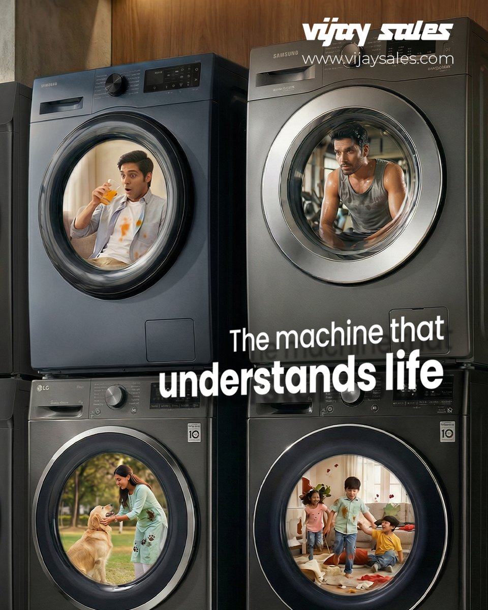 Life’s messy enough. Clothes don’t have to be!📷 #VijaySales #LifeIsMessy #MemoriesMade #LaundryDay #WashingMachine #HomeAppliances #Relatable #ShopSmart #ShopNow #BuyNow