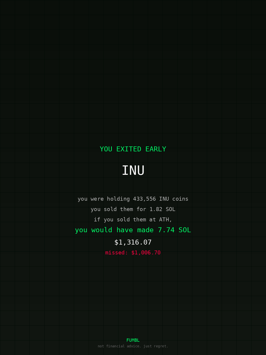 just checked fumbledbags.com bro actually coulda had a fat bag on $INU AoR4QXgeC1sEx1BENWxoNs7GCWf25kHYzNAPJDCppump #metamask #knows