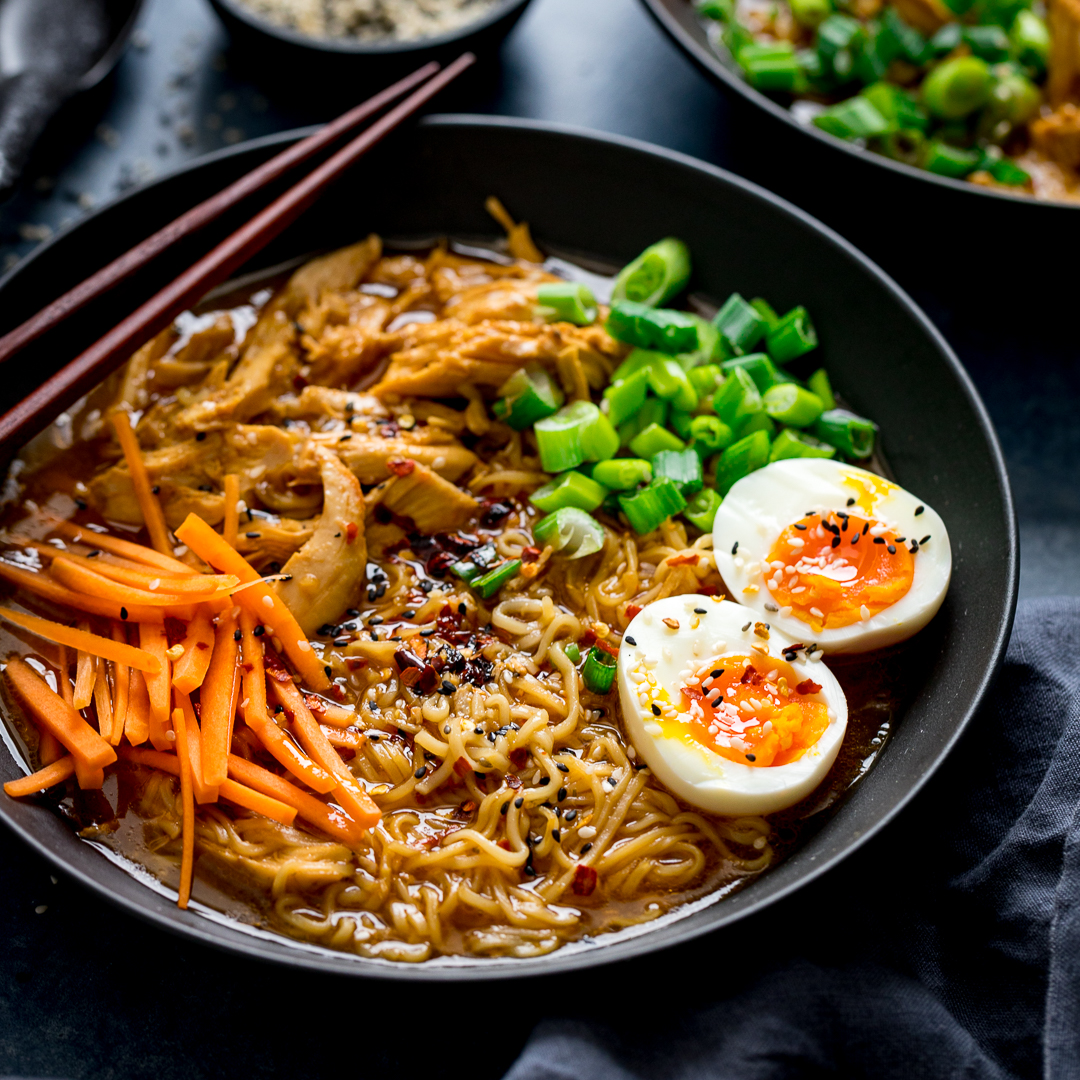 A quick Chicken Ramen using that uses instant noodles and cooked, shredded chicken for a speedy soup with a flavourful broth. You can make this delicious soup in 20 minutes - including the perfect soft-boiled egg!😋🍜 kitchensanctuary.com/easy-chicken-r… #kitchensanctuary #midweekmeals
