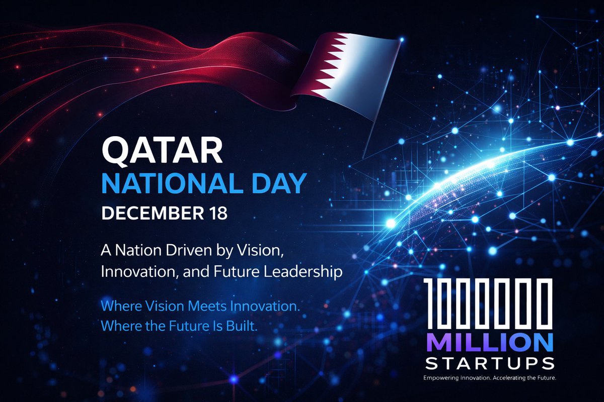 بمناسبة #اليوم_الوطني_لدولة_قطر 🇶🇦 قطر… نموذج يُلهم العالم برؤية تقود إلى المستقبل تتقدم #Million_Startups بخالص التهاني وأصدق التبريكات إلى دولة قطر الشقيقة، قيادةً وحكومةً وشعبًا، بمناسبة اليوم الوطني القطري (#18_ديسمبر). لقد جسدت #دولة_قطر، بقيادة حضرة صاحب السمو الأمير