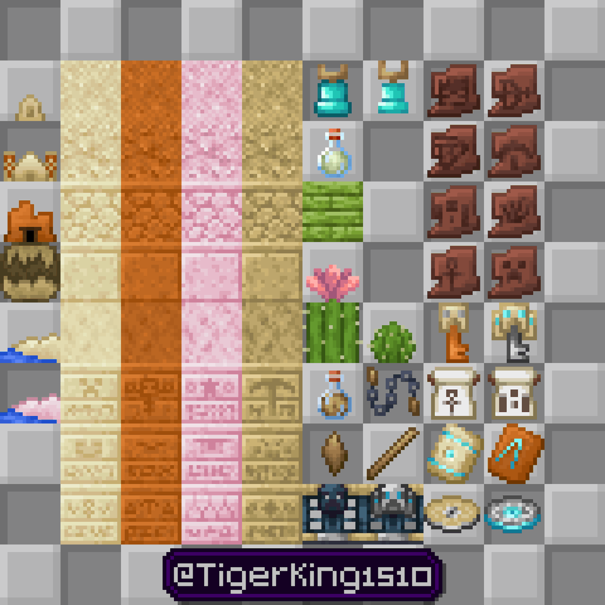 ¿Y si el desierto tuviese más vegetación? Spring to Life hizo un poco, pero da para más. Lo principal sería añadir palmeras como un nuevo árbol para desiertos y playas. Los cactus podrían dar madera también, además de añadir nuevos cactus. #Minecraft #Pixelart #MinecraftIdea
