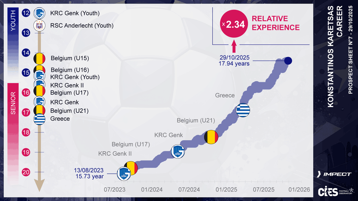 The new #Mkhitaryan ❓ 7th @CIES_Football #ProspectSheet with @impect_official highlights great 🇬🇷& 🇧🇪 talent #KonstantinosKaretsas 💪 Not yet 1⃣8⃣ & already a @KRCGenkofficial pillar & 🇬🇷 international 😮 Up to €2⃣8⃣m transfer value ❗️Full report 👉 football-observatory.com/-Prospect_Shee…