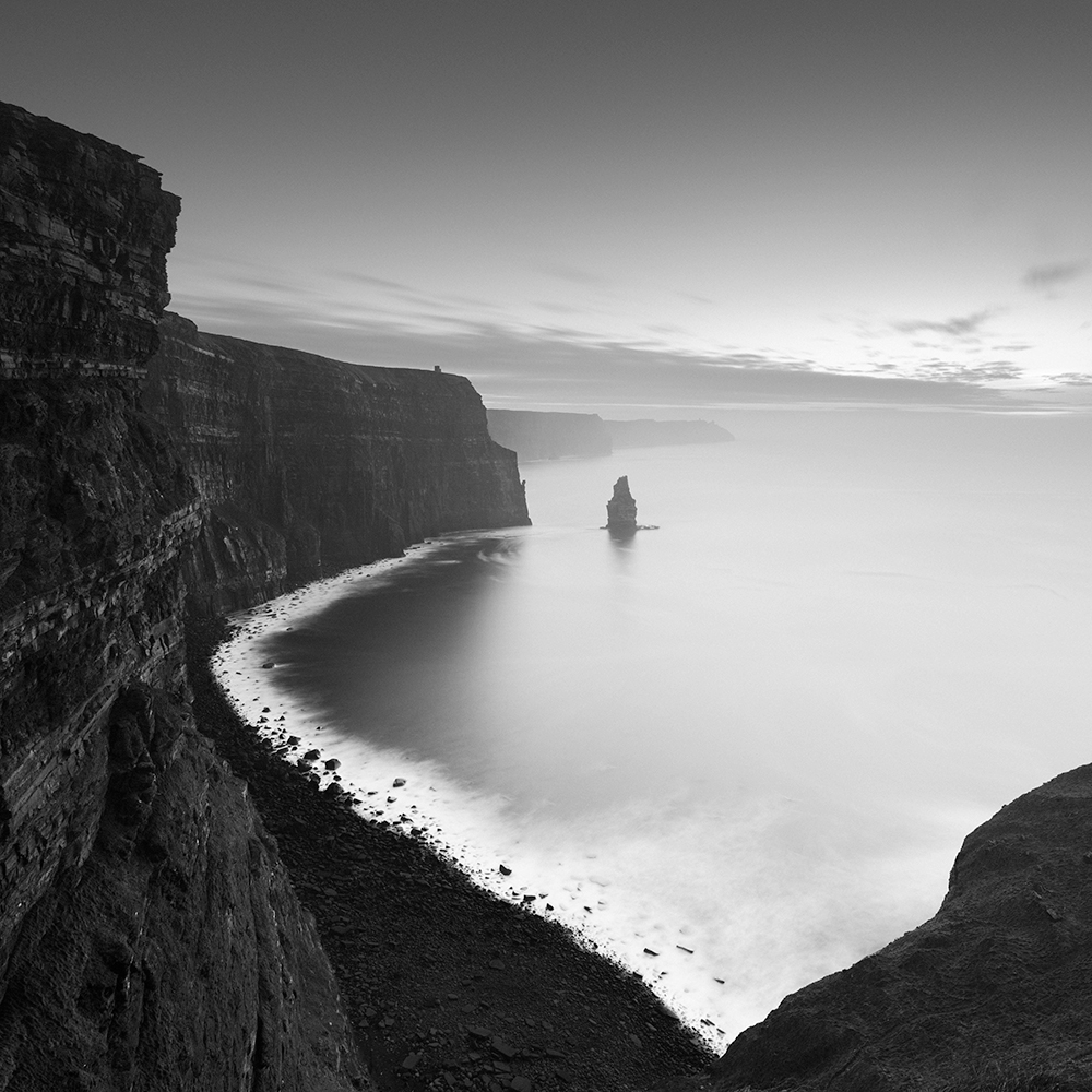Cliffs of Moher by John Crowley #moher #nature #landscape #blackandwhitephotography #seastack #blackandwhite #digital #clare #ireland #artoftheday #monochrome #blackandwhitephoto #seascape #blackwhite #fineart #contemporaryphotography #cliffs… artlimited.net/johncrowley/ar…