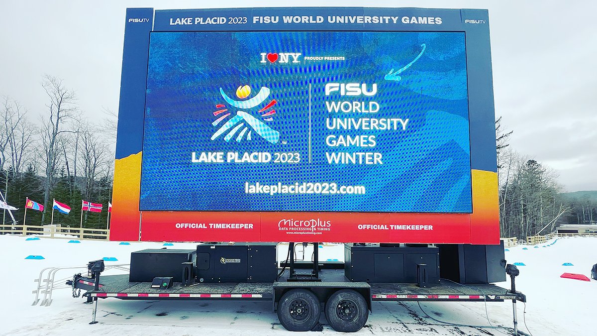 Did you see our MAX Mobile LED Trailers at the Lake Placid 2023 FISU World University Games? 7 mobile LED trailers optimized the experience for athletes, spectators, & fans! Thanks to partners @_Humdinger, @UltOutdoorEnt & Jay Delp Productions #MobileLEDtrailers #MAX2313
