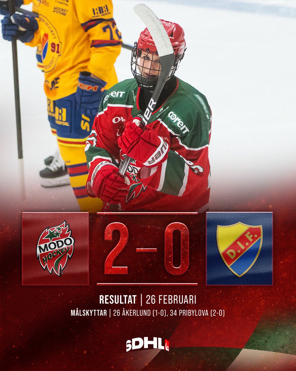 SÅJA! 🔥 Tre sköna poäng i omstarten. Segerorganisatörer: Tindra Holm som håller nollan och 17-åriga Maja Åkerlund som gör sitt första SDHL-mål och vackert spelar fram till Vendula Pribylovas 2–0. Ny match mot DIF imorrn kväll – ses då, MoDoiter! 👋 #modose