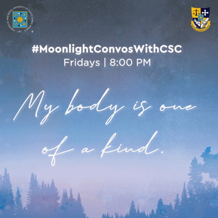 Prepare your evenings for a podcast that touches one’s mind, heart, and soul. Catch Moonlight Conversations every Friday at 8:00 PM on the UST-CSC’s Spotify page! Board by: Jerielle Barrientos #MoonlightConvosWithCSC #CSCTranscendingBorders #CSC2020Vision