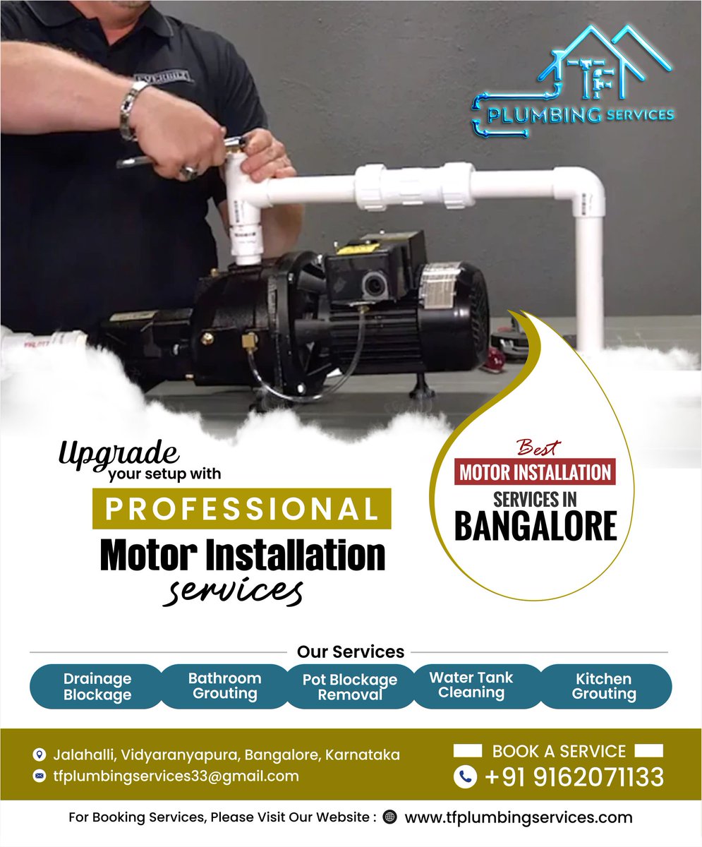 Experience flawless motor installation with TF Plumbing Services. Enjoy quick service, best-in-class solutions for homes and businesses, and trusted support in Bangalore. #TFPlumbingServices #MotorInstallation #PlumbingExperts #HomeService #BangalorePlumbing