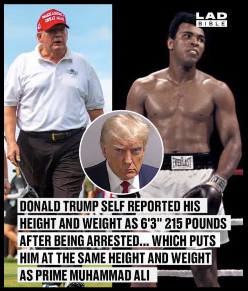 This is what a 6'3" 215 pound lean mean 'fighting' machine looks like! The 'other' one (in the red hat) is Donald Trump! 🤣 RIP #MuhammadAli #TheGreatestEver