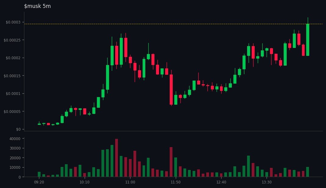 $MUSK (elon musk) doubled 💰 📊 MC: $38.3K | Liq: $15.0K 💵 Vol 24h: $5.1K 🔄 Buys/Sells: 68 / 55 📋 CA: GUfyGEF62BUUqj5f5PveZknhBQMWWFSXm2jqAdikpump 🤖 Full scan + chart → link in bio #musk #solhousesignal #solanagem #solana #100x