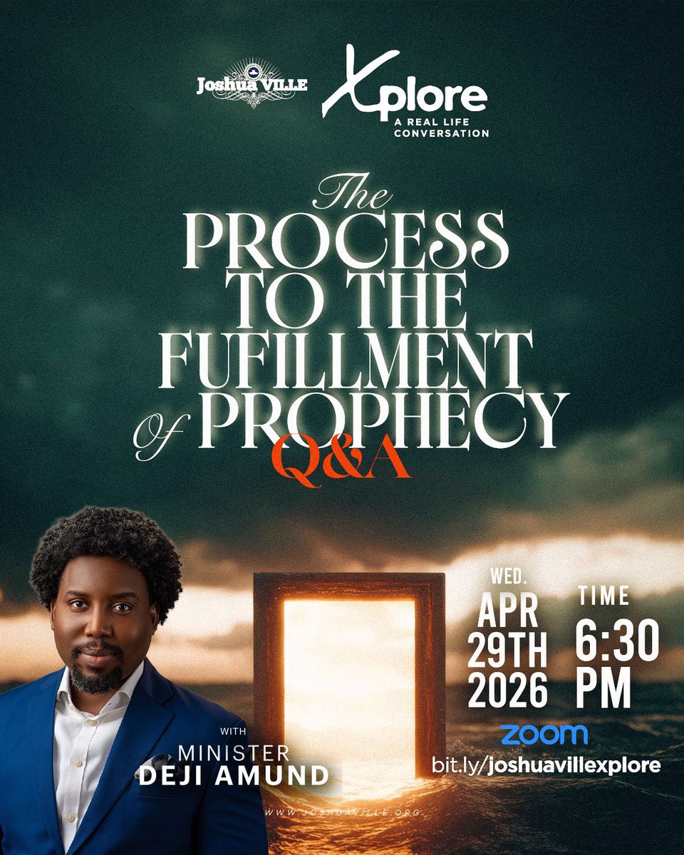 Now Live #Xplore Join us as we continue the conversation on ‘The Process to the Fulfilment of Prophecy’ leaning into the journey, the questions, and the understanding we need to walk confidently in what God has spoken. 📍 Zoom (bit.ly/joshuavillexpl…) #MyJoshuaVille
