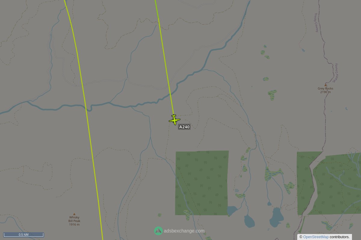 CalFire aircraft #N421DF callsign #A240 (a V10) was seen near Trinity County, CA at approx 23:27 UTC squawking 1255 globe.adsbexchange.com/?icao=a4ffa7&z… #CalFire
