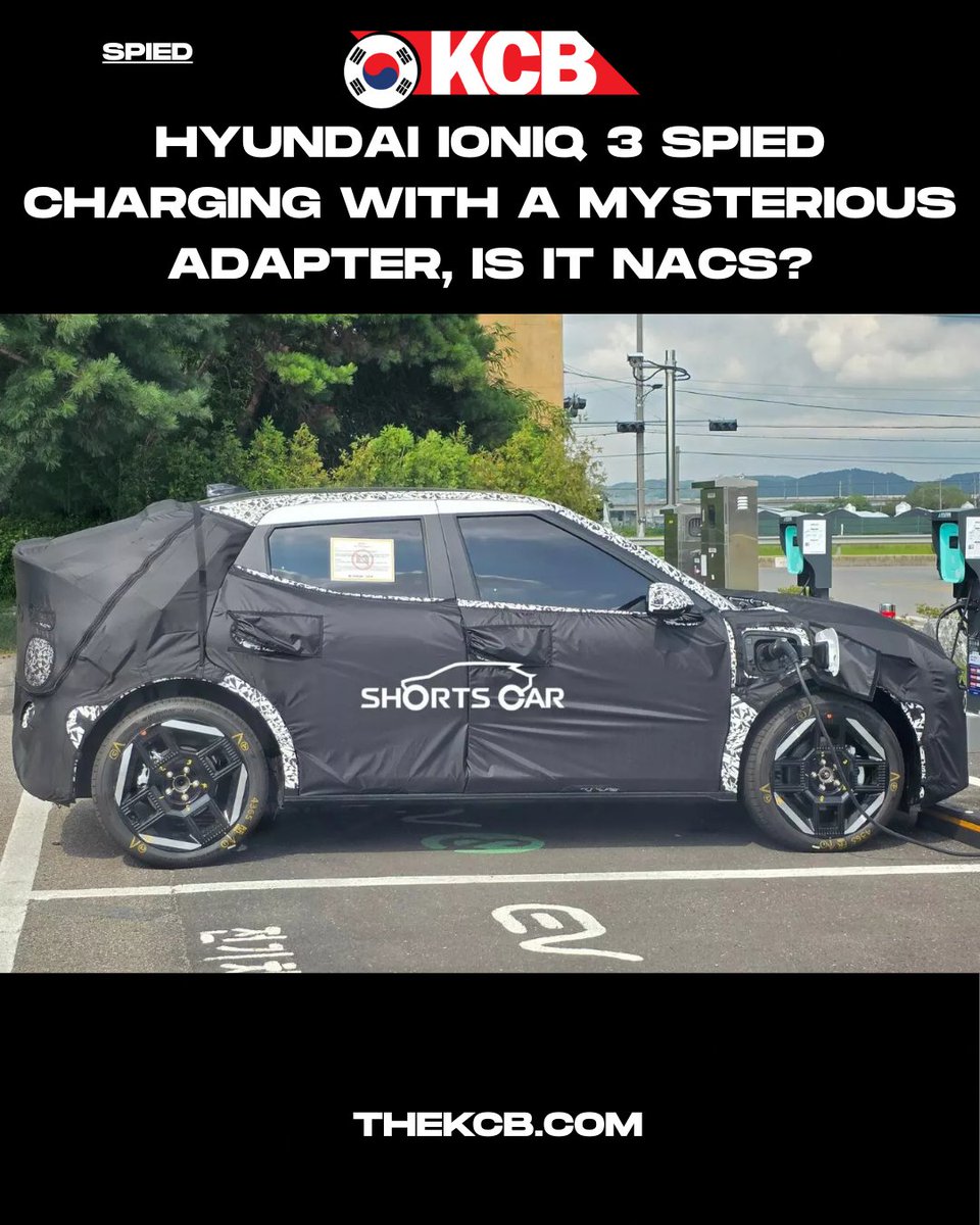 @HyundaiWorldwide is charging the #ioniq3 prototype with a mysterious adapter, is it #nacs ? Read more at thekoreancarblog.com/hyundai-ioniq-…