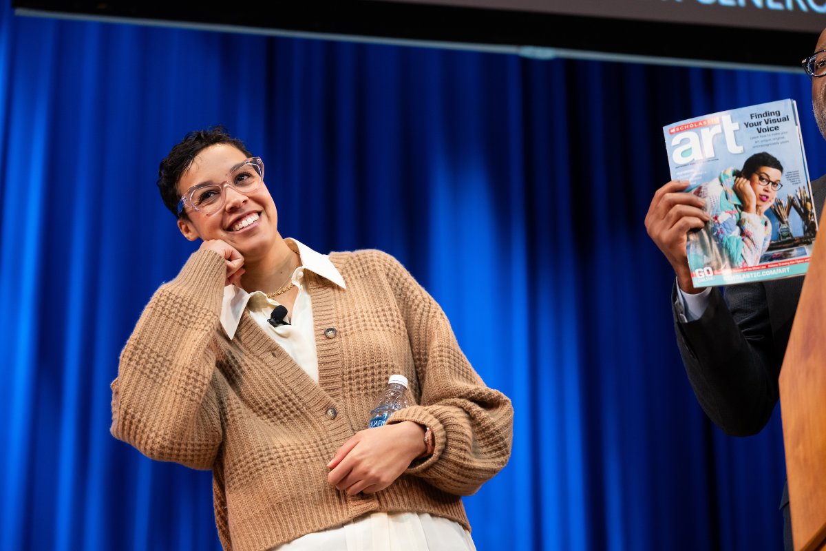 What a special moment to have @jordan_casteel on-stage at #NAEA24! Everyone in attendance received an issue of Scholastic Art magazine featuring Jordan's work and artistic process: bit.ly/4brsiMe @NAEA