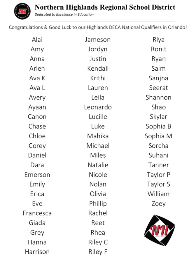 Today, 64 students from Northern Highlands are headed to Orlando, FL to compete in the DECA International Career Development Conference (ICDC) — the highlight of the DECA year! Best of luck to all our NH competitors — we’re proud of you! #DECAICDC #NHDECA #FutureLeaders