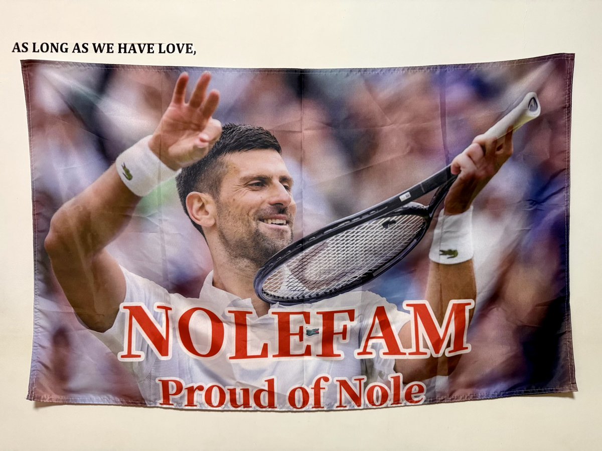 One of the best days of my life. Third row seats to watch @DjokerNole at Wimbledon and then getting my flag signed after his match. Great meeting up with other #NoleFam too. Nole you are simply the best ❤️#NoleFamDay