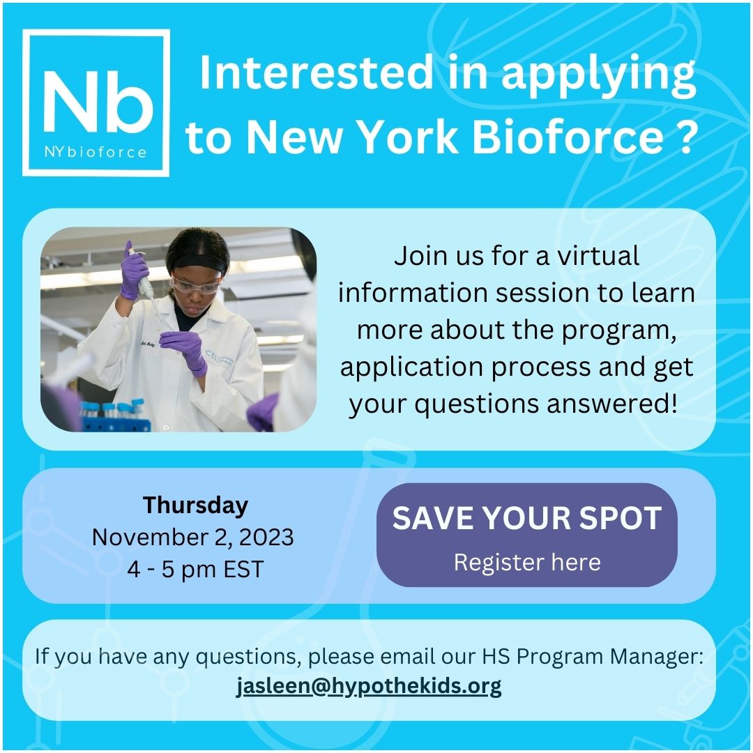 #HYPOTHEkids is bringing #NYBioforce to High School for Health Profession and Human Services (#HPHS) this Spring Semester! Students will gain hands-on experience in laboratory techniques and complete a paid summer research internship. #STEAMeducation #newchapter