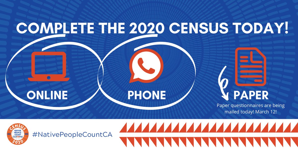 The #2020Census is now live! You can fill it out now online or by phone, and paper questionnaires are being mailed out today. Make sure that Native People Count this 2020 Census here: my2020census.gov #NativeCompleteCount #NativePeopleCountCA #NativePeopleCountCalifornia