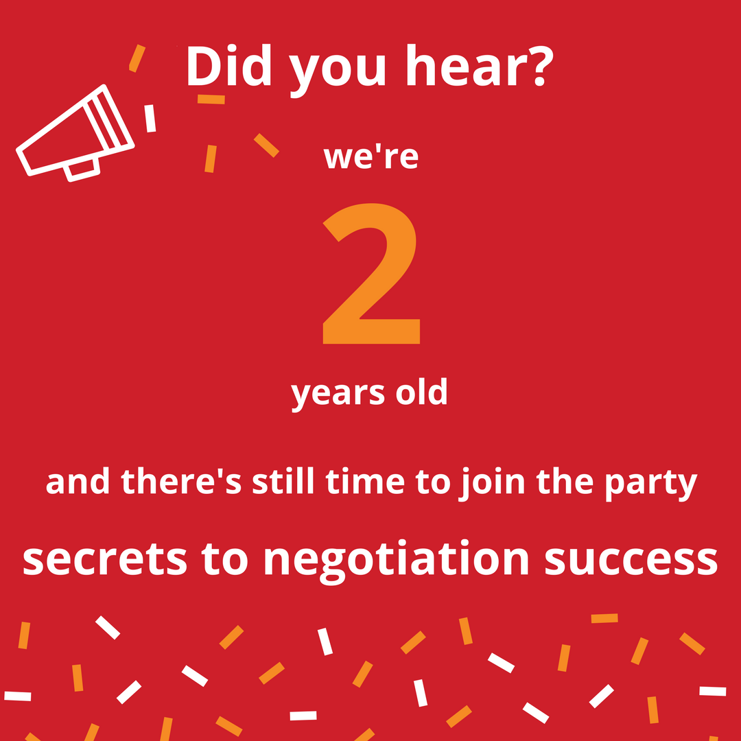 It's our 2nd birthday! Celebrate with Secrets To Negotiation Success, our new online class: goo.gl/JssGHs . #negotiationsecrets