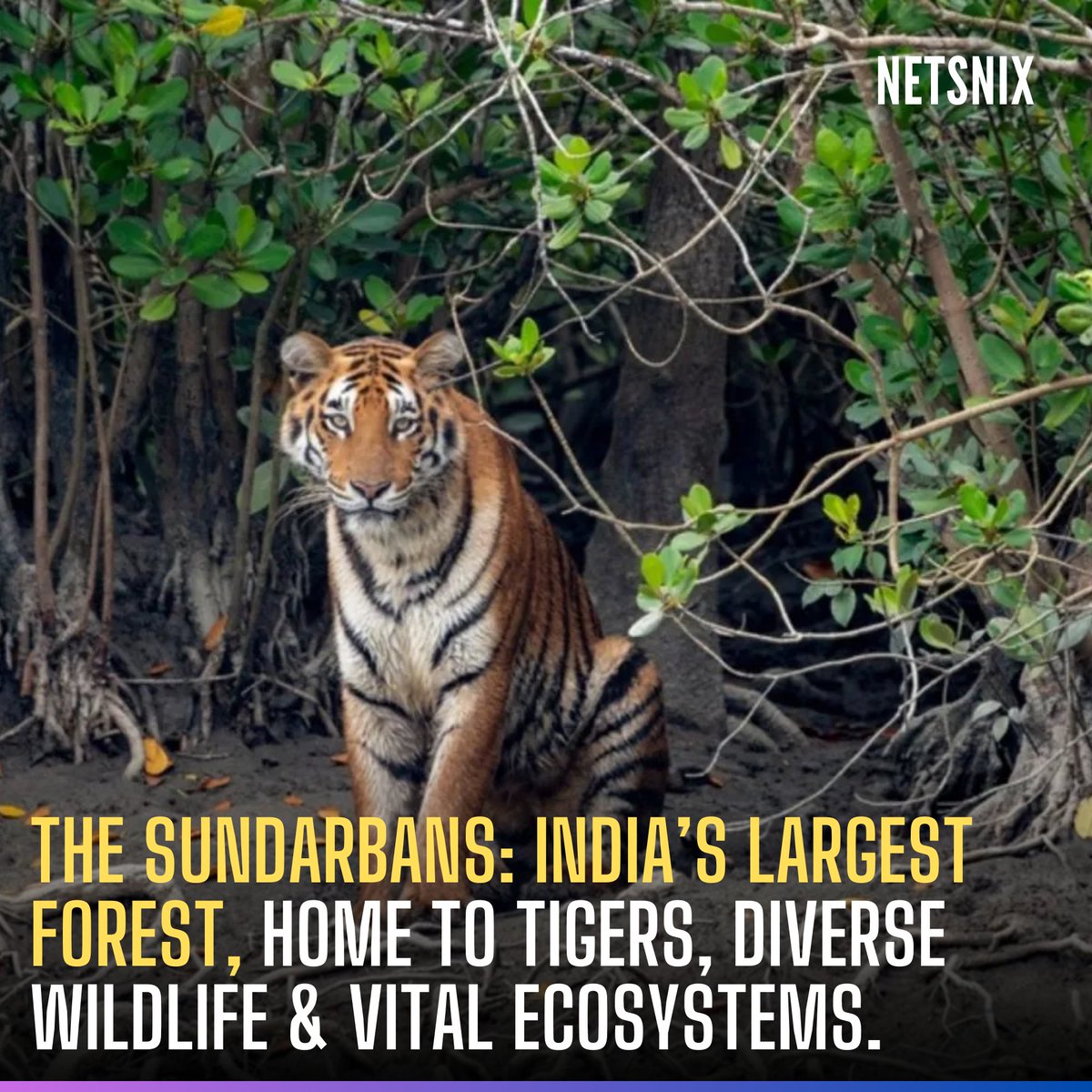 The Sundarbans, India's largest forest, spans 10,000 sq km across India & Bangladesh 🌳 Home to Royal Bengal Tigers, spotted deer, fishing cats, and more! 🐅 It's a haven for wildlife and a vital ecosystem Govt actions protect this incredible paradise! 🐾 #Sundarbans #NetSnix